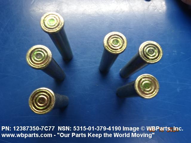 5315-01-379-4190 A headed, cylindrically-shaped item having a solid shank for fitting into corresponding holes, used for aligning or fastening. It may have welding projections. It also may contain holes drilled perpendicular to axial centerline. Excludes PIN, ECCENTRIC.