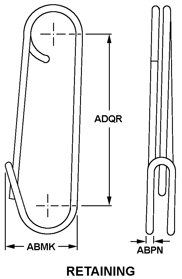 5315-01-419-5168 A preformed wire fastening device bent to form a spring at one end, one prong being extended, the other being bent to form a hook to hold the extended prong in place.