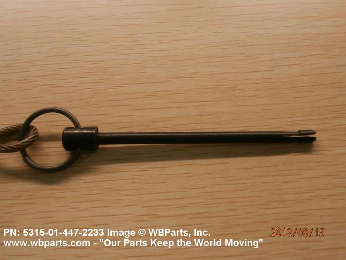 5315-01-447-2233 A headed fastening device having a solid cylindrical or tubular body with retaining ball or pinlike detent(s). The detent(s) is/are positioned and actuated by means of a spring, elastomer or plunger. Plunger may be operated by thumb, cam or other means. May be furnished with a pull ring, pull and/or lock ring, attaching ring or hook.