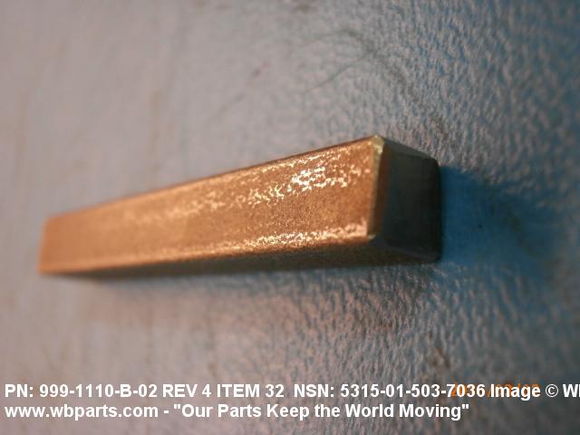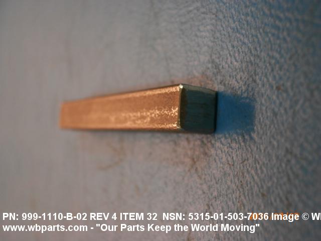 5315-01-503-7036 A metallic item, usually square or rectangular in cross section, usually longer in relation to its width and thickness, with or without a head, usually designed to fit into the pre-cut slots of two adjacent cylindrically shaped members, to prevent relative rotational movement between the two. It may have mounting holes or slots.