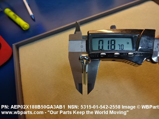 Part Alternates: AEP02X188B50GA3A71 , AEP02X188B50GA3AB1, ASME B18.24 , ASMEB1824, P810NAB018250003NNCD2, 5315-01-542-2558, 01-542-2558, 5315015422558, 015422558