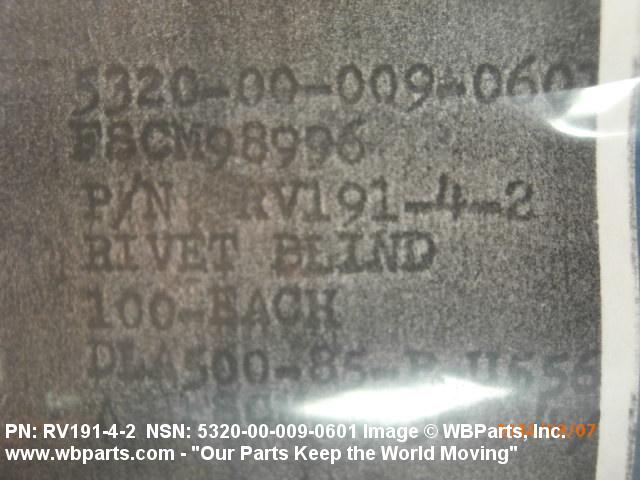 Part Alternates: NAS1769MW42, NAS1769MW4-2, RV119142, RV1191-4-2, 5320-00-009-0601, 00-009-0601, 5320000090601, 000090601