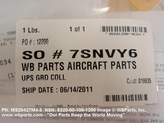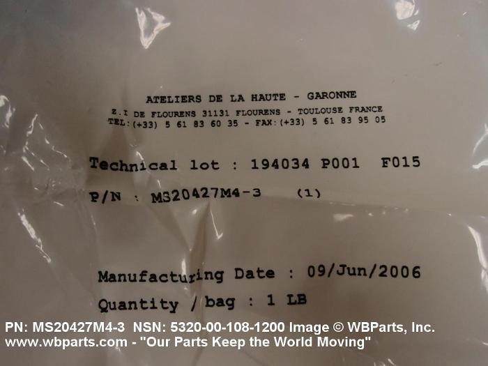 NSN 5320-00-108-1200 MS20427M43, MS20427M4-3, AN427