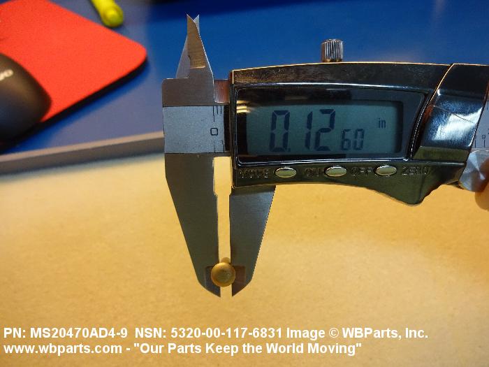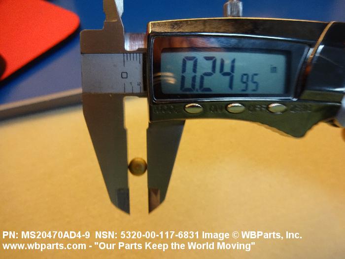 Part Alternates: MS20470AD49, MS20470AD4-9, NASM5674, AN470AD49, AN470AD4-9, MILR5674, 252AD49, 25-2AD4-9, 5320-00-117-6831, 00-117-6831, 5320001176831 , 001176831