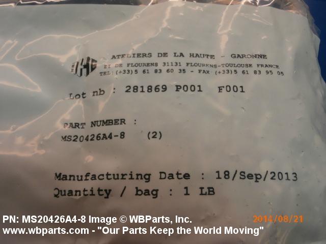 | MS20426AD4-8 | 80205 | NATIONAL AEROSPACE STANDARDS COMMITTEE AEROSPACE INDUSTRIES |