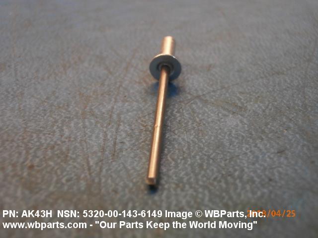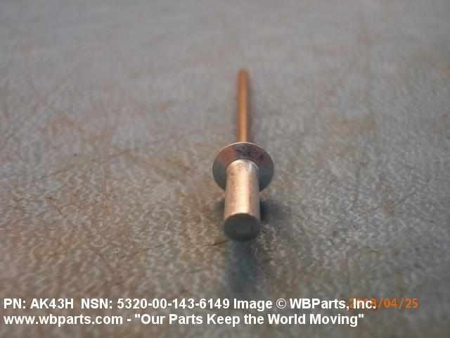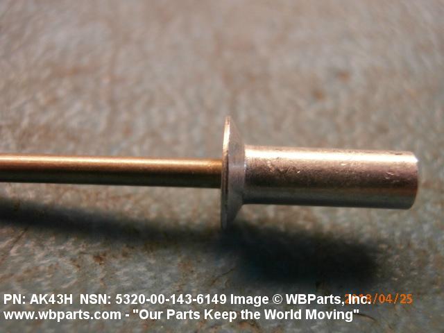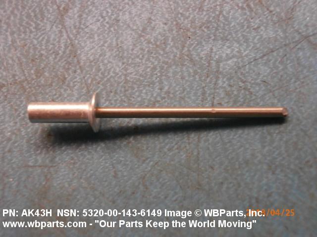 5320-00-143-6149 An item consisting of two or more of the following components: stem, rivet body, sleeve, expander, bolt, and collar. It is a headed fastening device with the shank designed to be expanded by means of a separate or integral stem or mandrel, or bolt and expander. It is designed to be installed or expanded from one side only. Excludes NUT, BLIND ASSEMBLY.