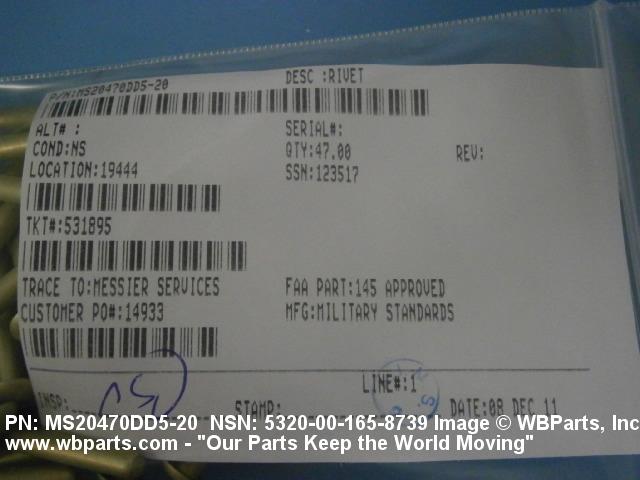 | MS20470DD5-20 | 80205 | NATIONAL AEROSPACE STANDARDS COMMITTEE AEROSPACE INDUSTRIES |