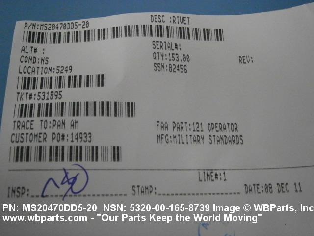 NSN 5320-00-165-8739 MS20470DD520, MS20470DD5-20, NASM 20470