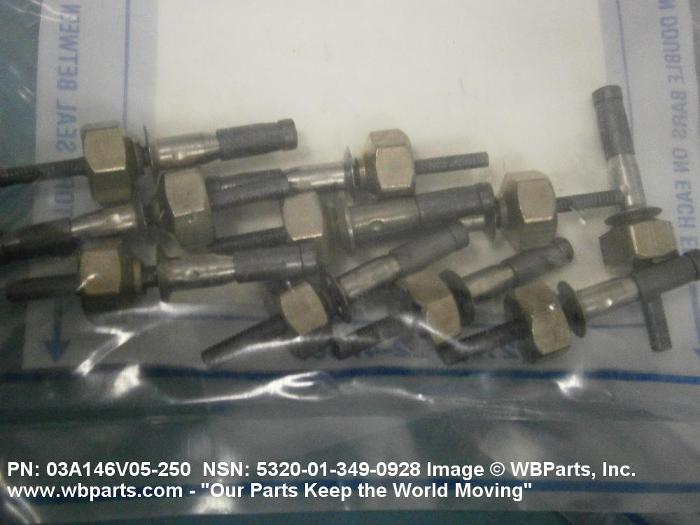 5320-00-204-5440 An item consisting of two or more of the following components: stem, rivet body, sleeve, expander, bolt, and collar. It is a headed fastening device with the shank designed to be expanded by means of a separate or integral stem or mandrel, or bolt and expander. It is designed to be installed or expanded from one side only. Excludes NUT, BLIND ASSEMBLY.