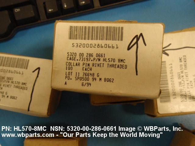 | HL570-8MC | 80539 | SPS TECHNOLOGIES, LLC DBA AEROSPACE FASTENERS GROUP |