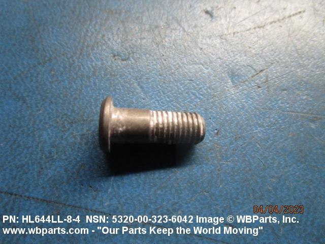 5320-00-323-6042 A metallic or nonmetallic item, headed at one end, with a cylindrically shaped shank which may be tapered, grooved, or threaded. A locking collar or sleeve may be provided to perform the same holding action as the clinching portion of a conventional rivet. The shank may include an external wrenching facility which breaks off at a predetermined applied torque.