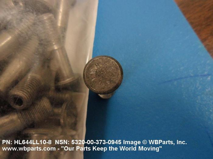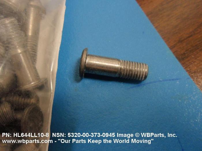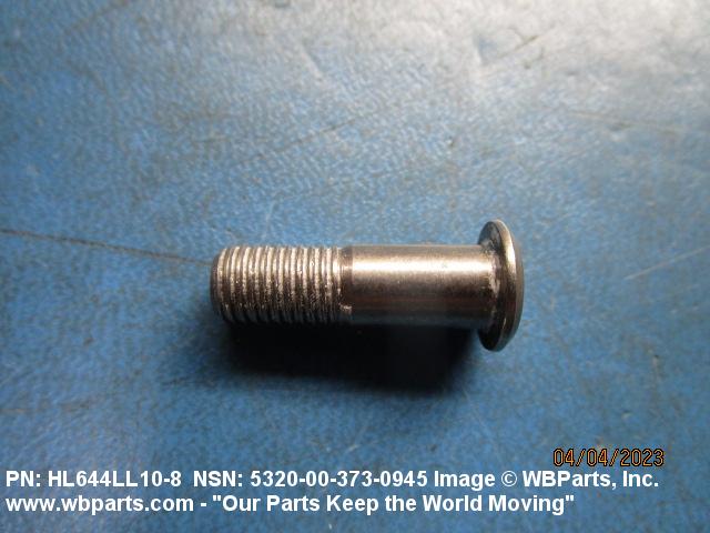5320-00-373-0945 A metallic or nonmetallic item, headed at one end, with a cylindrically shaped shank which may be tapered, grooved, or threaded. A locking collar or sleeve may be provided to perform the same holding action as the clinching portion of a conventional rivet. The shank may include an external wrenching facility which breaks off at a predetermined applied torque.