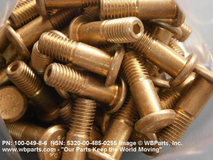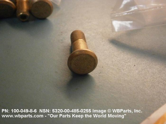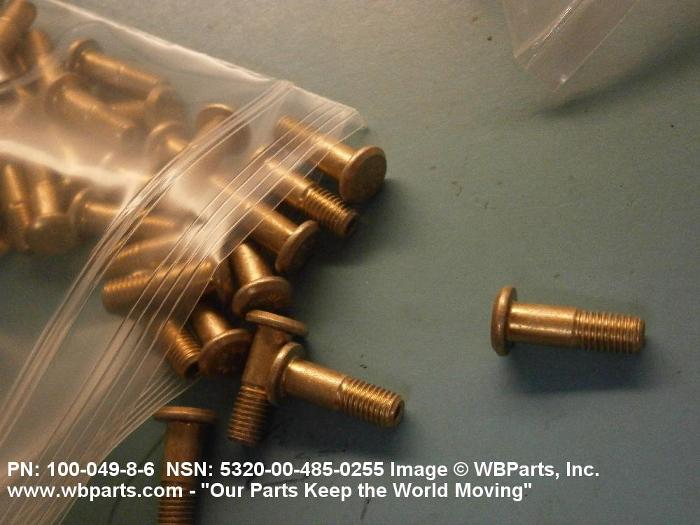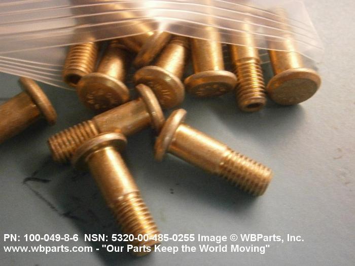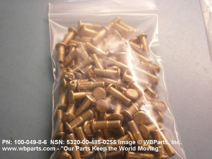 5320-00-485-0255 A metallic or nonmetallic item, headed at one end, with a cylindrically shaped shank which may be tapered, grooved, or threaded. A locking collar or sleeve may be provided to perform the same holding action as the clinching portion of a conventional rivet. The shank may include an external wrenching facility which breaks off at a predetermined applied torque.