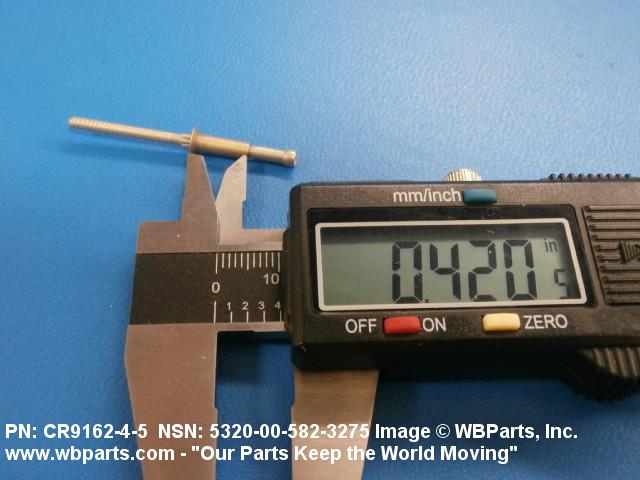 Part Alternates: MS20601AD4W5, NASM20601AD4W5, CR916245, CR9162-4-5, MILR7885, MIL-R-7885, RV20145, RV201-4-5, RV225043, RV2250-4-3 , 5320-00-582-3275, 00-582-3275, 5320005823275, 005823275