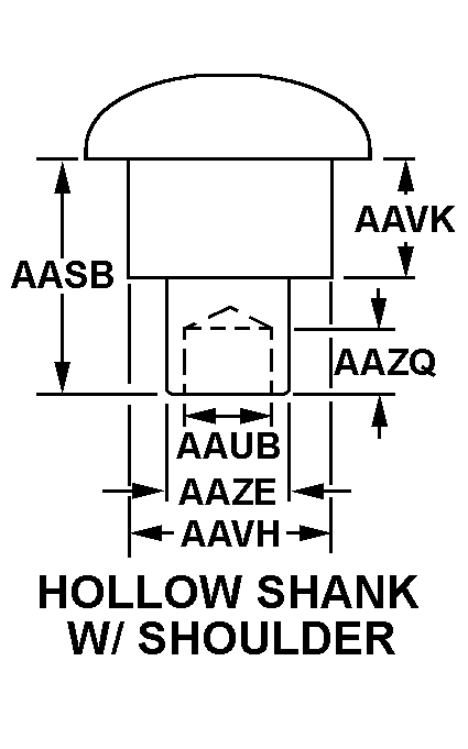 5320-00-740-7266 A headed fastening device having a smooth shank which is hollow or having a cavity at its end and designed to have the shank clinched after insertion.