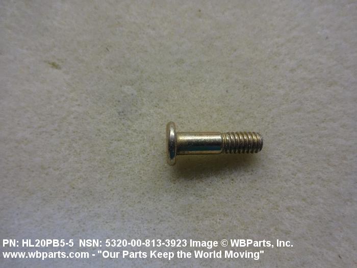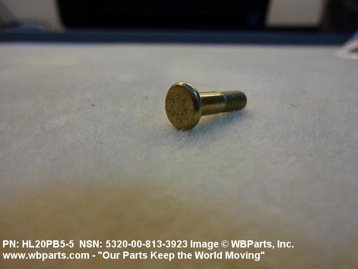 5320-00-813-3923 A metallic or nonmetallic item, headed at one end, with a cylindrically shaped shank which may be tapered, grooved, or threaded. A locking collar or sleeve may be provided to perform the same holding action as the clinching portion of a conventional rivet. The shank may include an external wrenching facility which breaks off at a predetermined applied torque.
