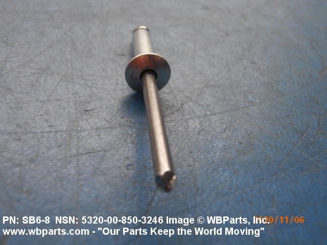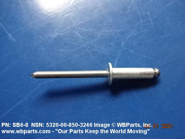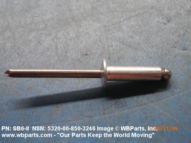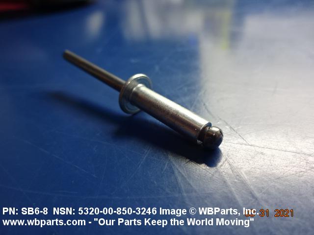 5320-00-850-3246 An item consisting of two or more of the following components: stem, rivet body, sleeve, expander, bolt, and collar. It is a headed fastening device with the shank designed to be expanded by means of a separate or integral stem or mandrel, or bolt and expander. It is designed to be installed or expanded from one side only. Excludes NUT, BLIND ASSEMBLY.