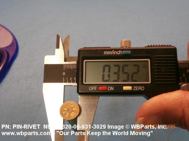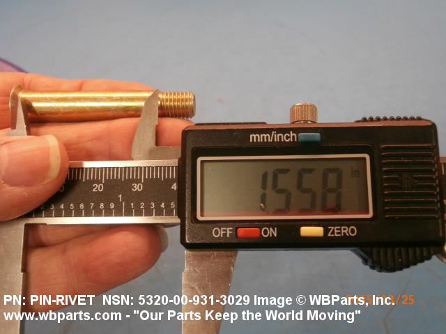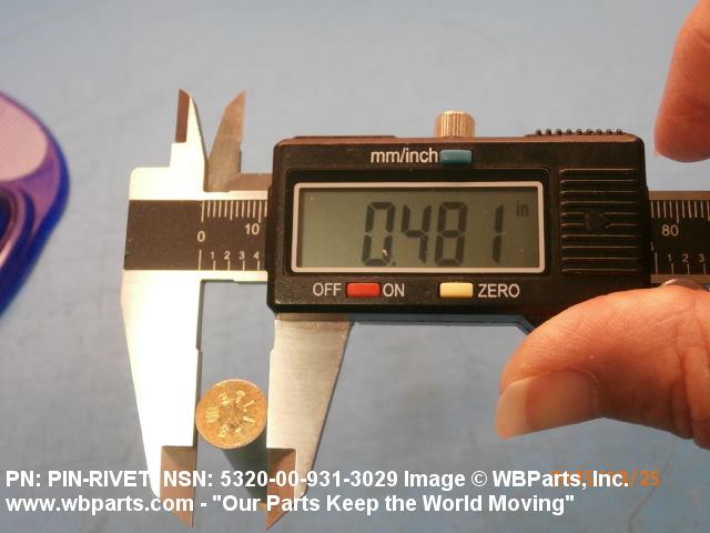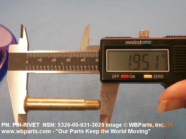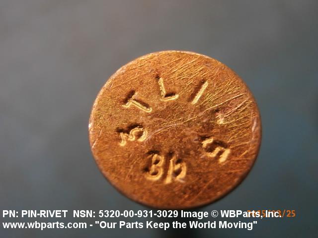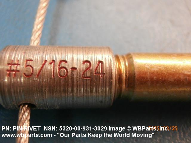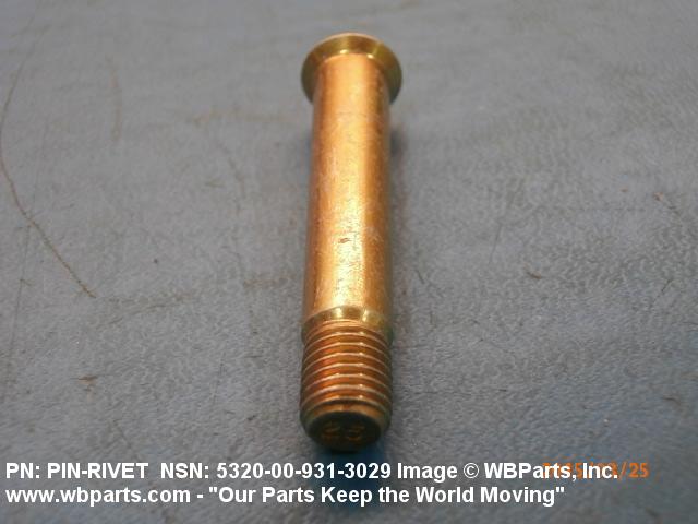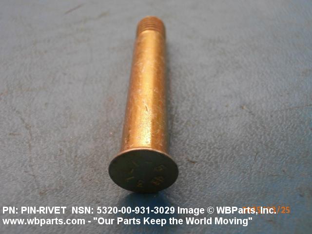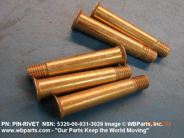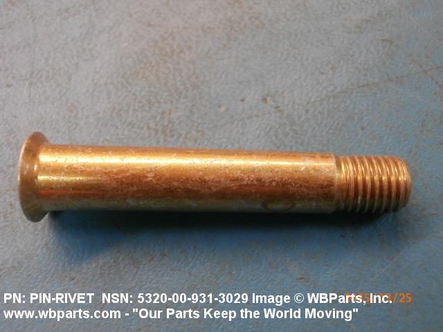 5320-00-931-3029 A metallic or nonmetallic item, headed at one end, with a cylindrically shaped shank which may be tapered, grooved, or threaded. A locking collar or sleeve may be provided to perform the same holding action as the clinching portion of a conventional rivet. The shank may include an external wrenching facility which breaks off at a predetermined applied torque.
