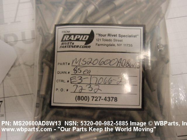 NSN 5320-00-982-5885 MS20600AD8W13, 00-982-5885, 009825885
