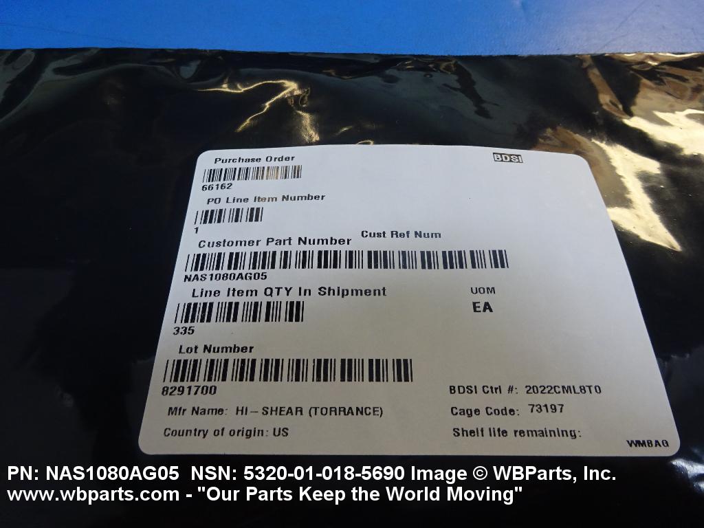 | NAS1080AG05 | 17446 | HUCK INTERNATIONAL, INC. DBA ALCOA FASTENING SYSTEMS |