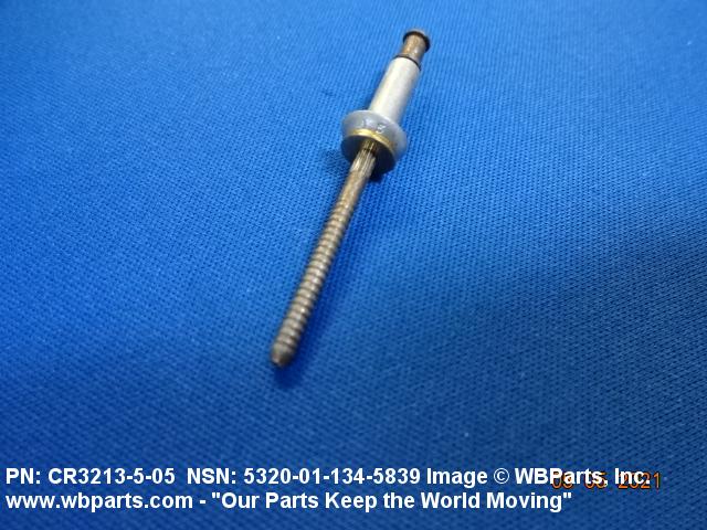 5320-01-134-5839 An item consisting of two or more of the following components: stem, rivet body, sleeve, expander, bolt, and collar. It is a headed fastening device with the shank designed to be expanded by means of a separate or integral stem or mandrel, or bolt and expander. It is designed to be installed or expanded from one side only. Excludes NUT, BLIND ASSEMBLY.
