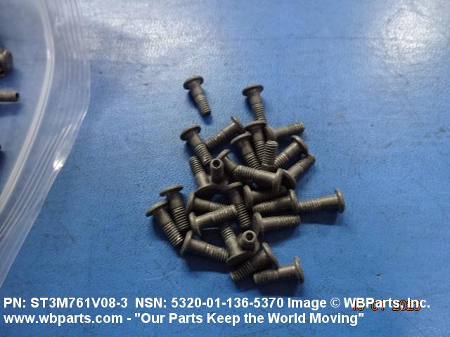 5320-01-136-5370 A metallic or nonmetallic item, headed at one end, with a cylindrically shaped shank which may be tapered, grooved, or threaded. A locking collar or sleeve may be provided to perform the same holding action as the clinching portion of a conventional rivet. The shank may include an external wrenching facility which breaks off at a predetermined applied torque.