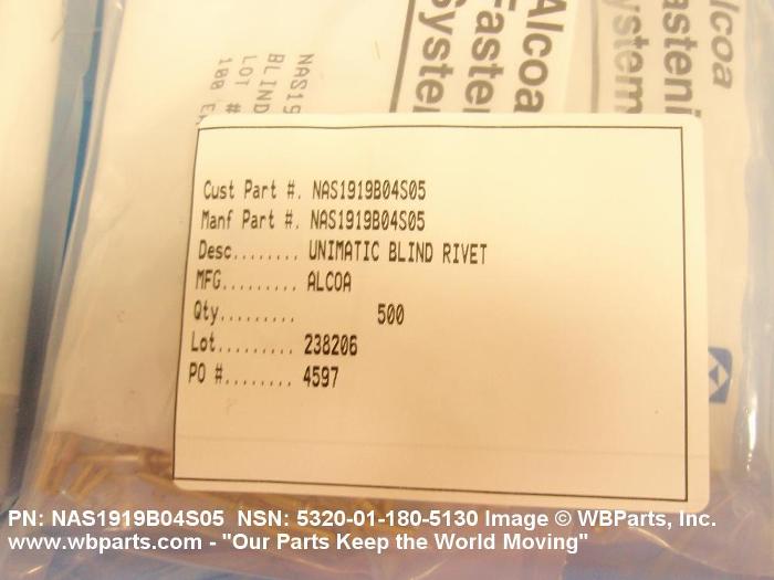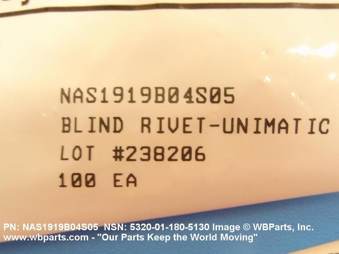 NSN 5320-01-180-5130 MLSPB04S05, MLSP-B04S05, NAS1919B04S05