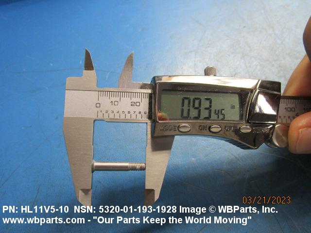 5320-01-193-1928 A metallic or nonmetallic item, headed at one end, with a cylindrically shaped shank which may be tapered, grooved, or threaded. A locking collar or sleeve may be provided to perform the same holding action as the clinching portion of a conventional rivet. The shank may include an external wrenching facility which breaks off at a predetermined applied torque.