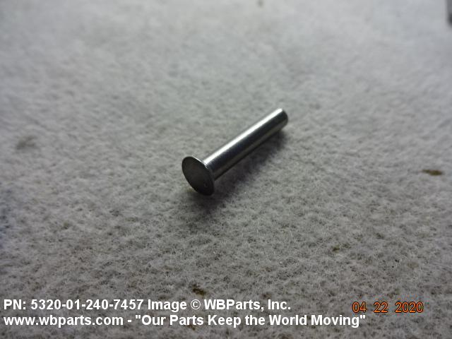 5320-01-240-7457 A headed fastening device having a smooth solid shank designed to have the shank end upset after insertion.