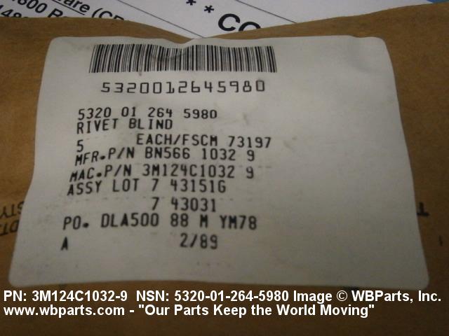 NSN 5320-01-264-5980 BN56610329, BN566-1032-9 , 3M124C10329