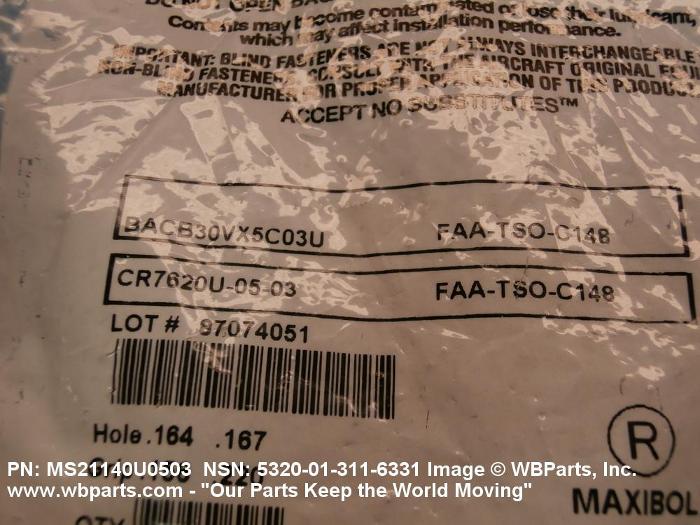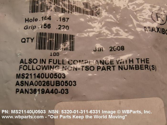 NSN 5320-01-311-6331 MS21140U0503, 01-311-6331, 013116331