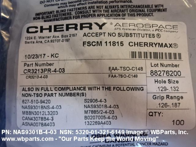 NSN 5320-01-321-6149 NAS9301B403, NAS9301B-4-03, 01-321-6149