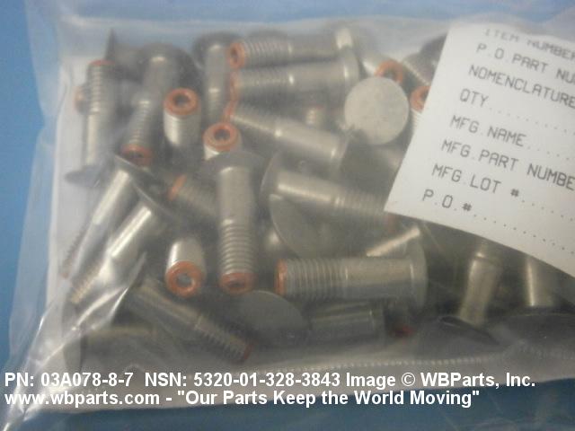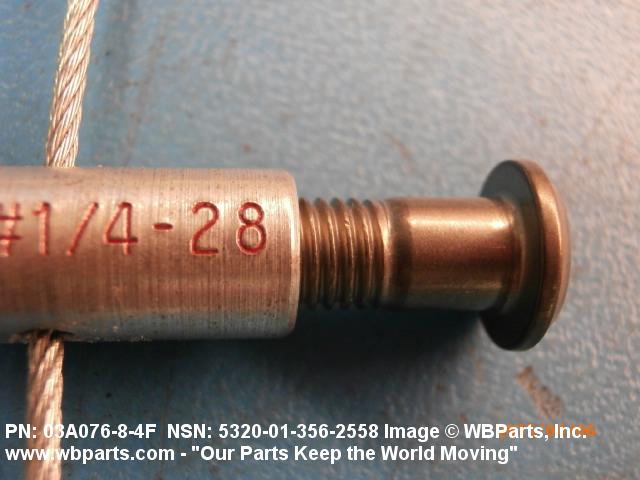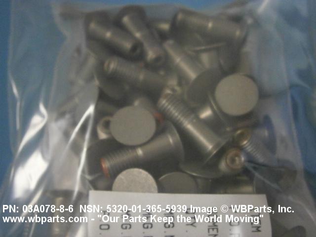 5320-01-351-0494 A metallic or nonmetallic item, headed at one end, with a cylindrically shaped shank which may be tapered, grooved, or threaded. A locking collar or sleeve may be provided to perform the same holding action as the clinching portion of a conventional rivet. The shank may include an external wrenching facility which breaks off at a predetermined applied torque.