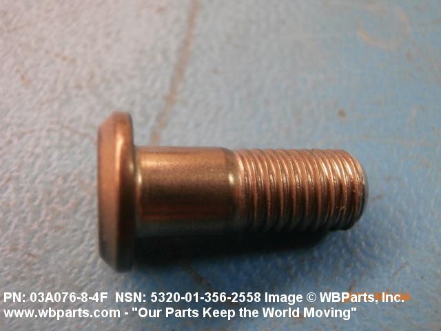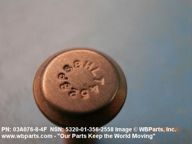 5320-01-356-2558 A metallic or nonmetallic item, headed at one end, with a cylindrically shaped shank which may be tapered, grooved, or threaded. A locking collar or sleeve may be provided to perform the same holding action as the clinching portion of a conventional rivet. The shank may include an external wrenching facility which breaks off at a predetermined applied torque.