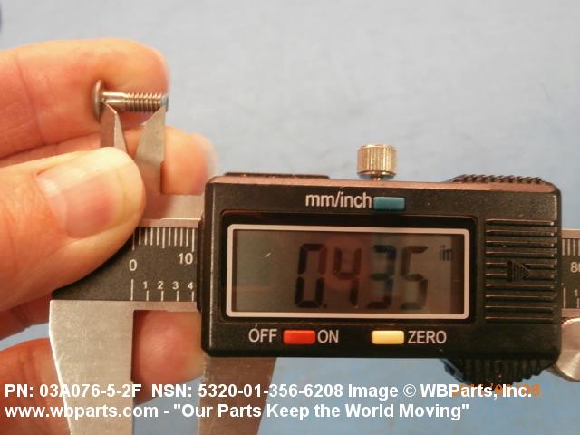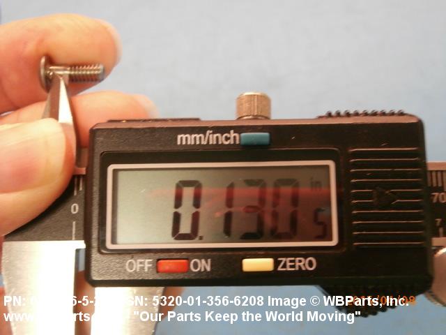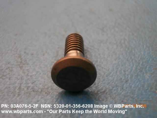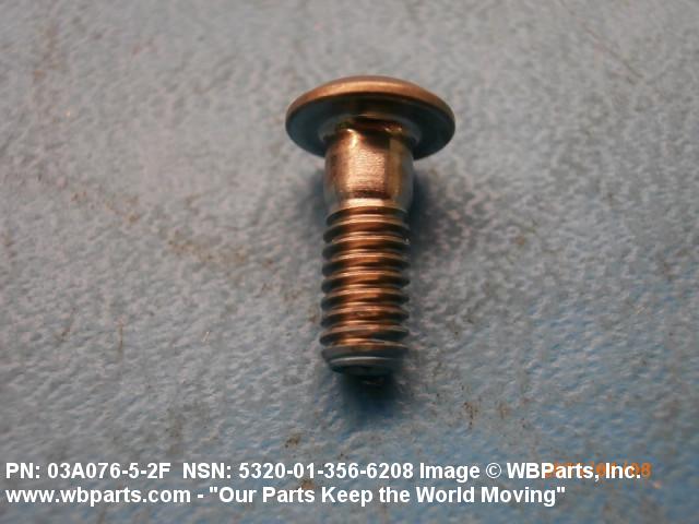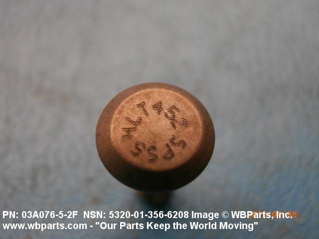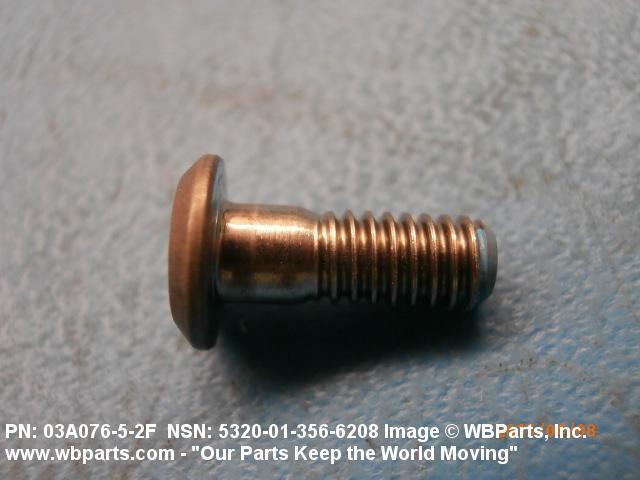 5320-01-356-6208 A metallic or nonmetallic item, headed at one end, with a cylindrically shaped shank which may be tapered, grooved, or threaded. A locking collar or sleeve may be provided to perform the same holding action as the clinching portion of a conventional rivet. The shank may include an external wrenching facility which breaks off at a predetermined applied torque.