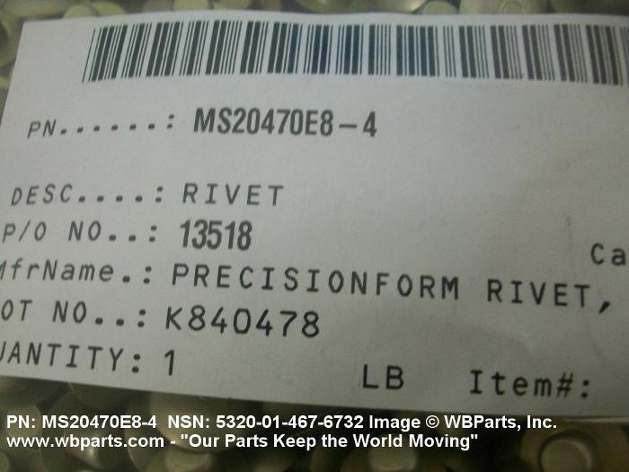 NSN 5320-01-467-6732 MS20470E84, MS20470E8-4, AF2037O1E8C4