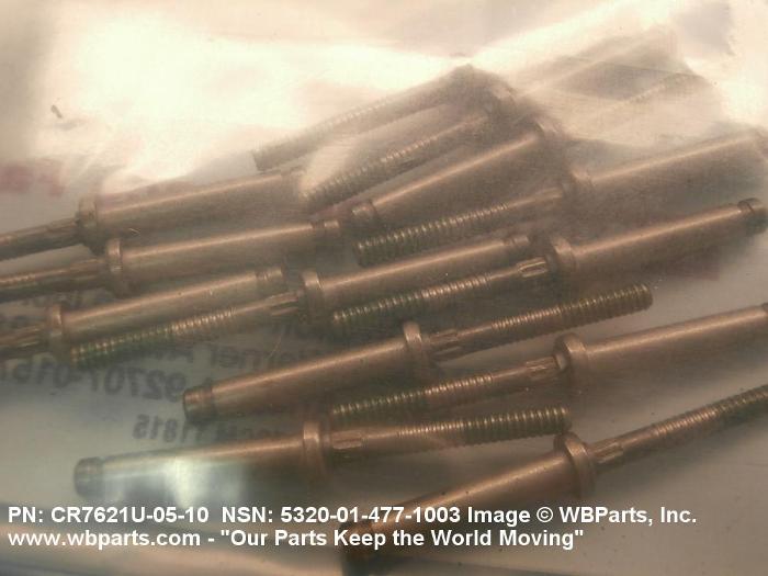 5320-01-477-1003 An item consisting of two or more of the following components: stem, rivet body, sleeve, expander, bolt, and collar. It is a headed fastening device with the shank designed to be expanded by means of a separate or integral stem or mandrel, or bolt and expander. It is designed to be installed or expanded from one side only. Excludes NUT, BLIND ASSEMBLY.