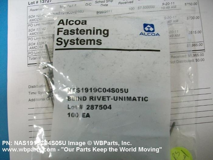 NSN 5320-01-606-9619 NAS1919C04S05U , 01-606-9619, 016069619