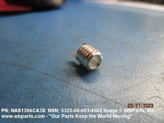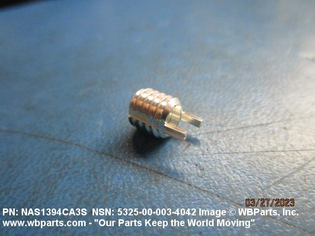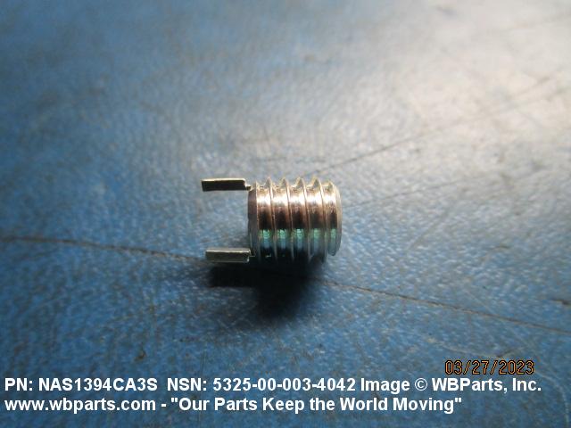 5325-00-003-4042 A cylindrical item which may have wrenching and/or driving facilities and/or shoulders. It is designed to be inserted in a drilled, tapped or a pretapped hole, or molded or pressed into soft material to reduce the size of a tapped hole; to provide threads; to add strength, and/or to prevent stripping. It is one of the following: (1) a one-piece, flanged or unflanged, internally threaded item which may have external threads, and/or serrations around the periphery of the collar, designed to engage a serrated lock ring which is not included with the item; (2) a one-piece precision coiled wire; (3) a two-piece item consisting of an internally threaded cylinder and a mating externally threaded part; or (4) a one-piece internally threaded item whose outside diameter is tapered and/or knurled and/or with fin(s). The internal thread of the item may have a locking feature. Excludes items having a sleeve on on its under portion which can be clinched or crimped. Excludes BUSHING,MACHINE THREAD; NUT,PLAIN,KNURLED; NUT,PLAIN,ROUND; NUT,PLAIN,CLINCH and NUT,SELF-LOCKING,CLINCH. See also NUT,PLAIN,PLATE