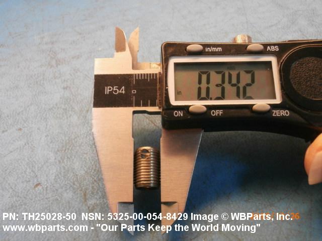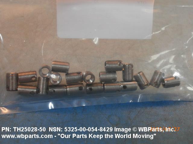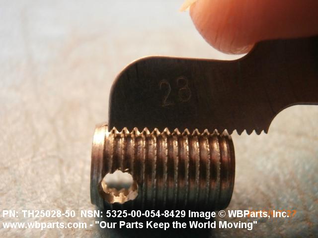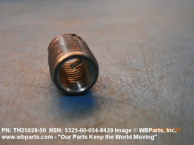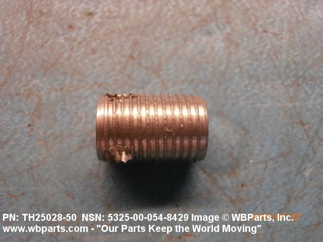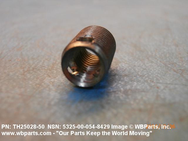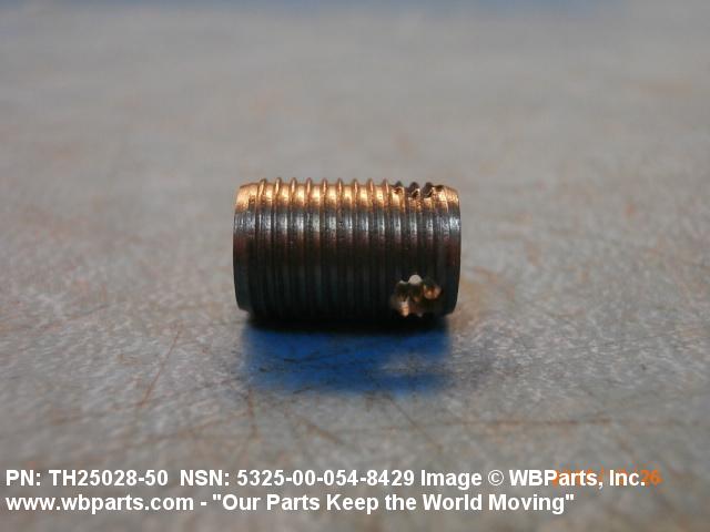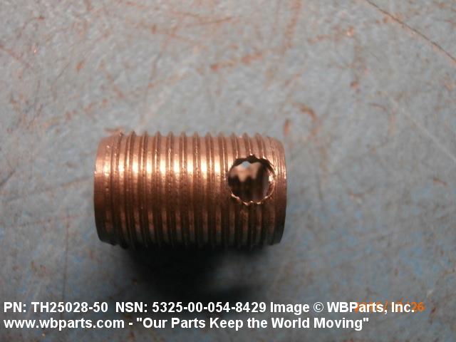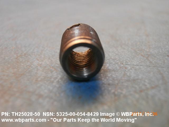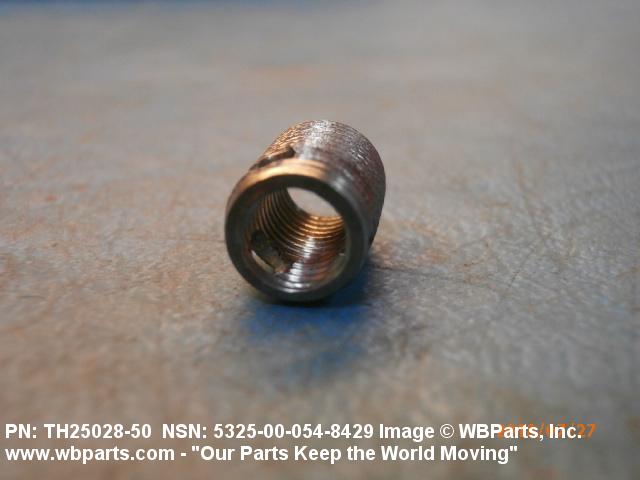 5325-00-054-8429 A cylindrical item which may have wrenching and/or driving facilities and/or shoulders. It is designed to be inserted in a drilled, tapped or a pretapped hole, or molded or pressed into soft material to reduce the size of a tapped hole; to provide threads; to add strength, and/or to prevent stripping. It is one of the following: (1) a one-piece, flanged or unflanged, internally threaded item which may have external threads, and/or serrations around the periphery of the collar, designed to engage a serrated lock ring which is not included with the item; (2) a one-piece precision coiled wire; (3) a two-piece item consisting of an internally threaded cylinder and a mating externally threaded part; or (4) a one-piece internally threaded item whose outside diameter is tapered and/or knurled and/or with fin(s). The internal thread of the item may have a locking feature. Excludes items having a sleeve on on its under portion which can be clinched or crimped. Excludes BUSHING,MACHINE THREAD; NUT,PLAIN,KNURLED; NUT,PLAIN,ROUND; NUT,PLAIN,CLINCH and NUT,SELF-LOCKING,CLINCH. See also NUT,PLAIN,PLATE