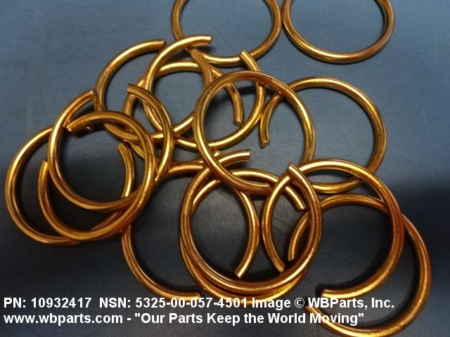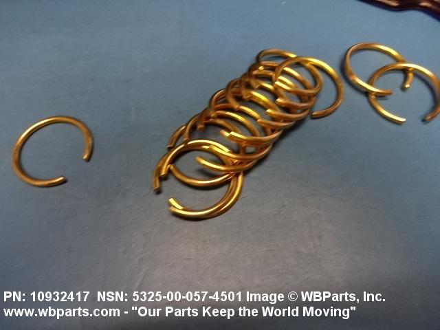 5325-00-057-4501 A resilient metal item, circular or nearly circular, which is designed to be inserted into an internal or external groove and retained by its own spring action, or it may have external prongs or projections designed to be inserted into a hole and retained by spring action of the prongs which grip by imbedding into the material. For items having internal prongs which perform the same function, see PUSH ON NUT. It is used to keep and/or lock a part(s) in position, as a ball bearing on a shaft or in a housing. See also CLIP, RETAINING and PIN, LOCK. Excludes RING, CONNECTING, ROUND.