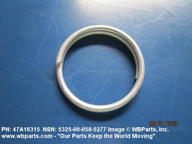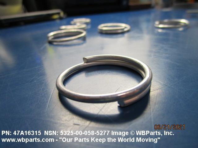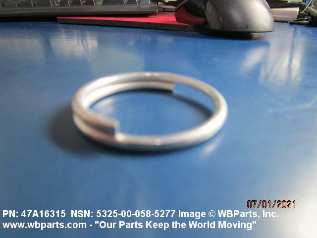 5325-00-058-5277 A resilient metal item, circular or nearly circular, which is designed to be inserted into an internal or external groove and retained by its own spring action, or it may have external prongs or projections designed to be inserted into a hole and retained by spring action of the prongs which grip by imbedding into the material. For items having internal prongs which perform the same function, see PUSH ON NUT. It is used to keep and/or lock a part(s) in position, as a ball bearing on a shaft or in a housing. See also CLIP, RETAINING and PIN, LOCK. Excludes RING, CONNECTING, ROUND.