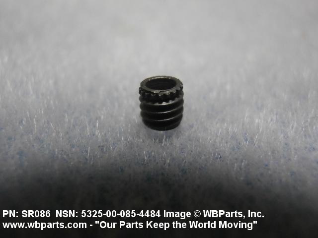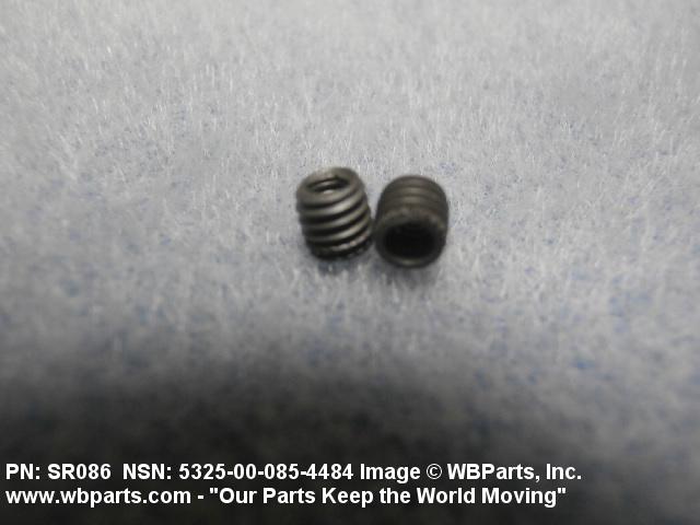 5325-00-085-4484 A cylindrical item which may have wrenching and/or driving facilities and/or shoulders. It is designed to be inserted in a drilled, tapped or a pretapped hole, or molded or pressed into soft material to reduce the size of a tapped hole; to provide threads; to add strength, and/or to prevent stripping. It is one of the following: (1) a one-piece, flanged or unflanged, internally threaded item which may have external threads, and/or serrations around the periphery of the collar, designed to engage a serrated lock ring which is not included with the item; (2) a one-piece precision coiled wire; (3) a two-piece item consisting of an internally threaded cylinder and a mating externally threaded part; or (4) a one-piece internally threaded item whose outside diameter is tapered and/or knurled and/or with fin(s). The internal thread of the item may have a locking feature. Excludes items having a sleeve on on its under portion which can be clinched or crimped. Excludes BUSHING,MACHINE THREAD; NUT,PLAIN,KNURLED; NUT,PLAIN,ROUND; NUT,PLAIN,CLINCH and NUT,SELF-LOCKING,CLINCH. See also NUT,PLAIN,PLATE