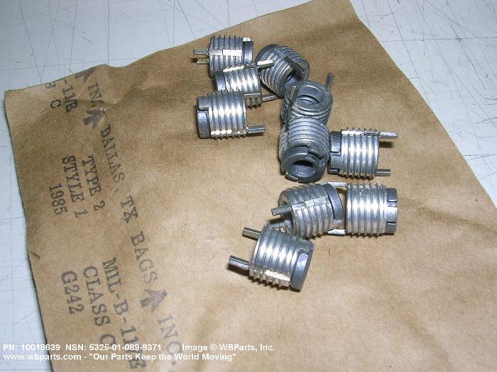 5325-00-162-4695 A cylindrical item which may have wrenching and/or driving facilities and/or shoulders. It is designed to be inserted in a drilled, tapped or a pretapped hole, or molded or pressed into soft material to reduce the size of a tapped hole; to provide threads; to add strength, and/or to prevent stripping. It is one of the following: (1) a one-piece, flanged or unflanged, internally threaded item which may have external threads, and/or serrations around the periphery of the collar, designed to engage a serrated lock ring which is not included with the item; (2) a one-piece precision coiled wire; (3) a two-piece item consisting of an internally threaded cylinder and a mating externally threaded part; or (4) a one-piece internally threaded item whose outside diameter is tapered and/or knurled and/or with fin(s). The internal thread of the item may have a locking feature. Excludes items having a sleeve on on its under portion which can be clinched or crimped. Excludes BUSHING,MACHINE THREAD; NUT,PLAIN,KNURLED; NUT,PLAIN,ROUND; NUT,PLAIN,CLINCH and NUT,SELF-LOCKING,CLINCH. See also NUT,PLAIN,PLATE