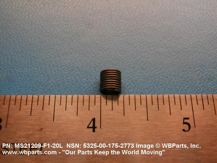 5325-00-175-2773 A cylindrical item which may have wrenching and/or driving facilities and/or shoulders. It is designed to be inserted in a drilled, tapped or a pretapped hole, or molded or pressed into soft material to reduce the size of a tapped hole; to provide threads; to add strength, and/or to prevent stripping. It is one of the following: (1) a one-piece, flanged or unflanged, internally threaded item which may have external threads, and/or serrations around the periphery of the collar, designed to engage a serrated lock ring which is not included with the item; (2) a one-piece precision coiled wire; (3) a two-piece item consisting of an internally threaded cylinder and a mating externally threaded part; or (4) a one-piece internally threaded item whose outside diameter is tapered and/or knurled and/or with fin(s). The internal thread of the item may have a locking feature. Excludes items having a sleeve on on its under portion which can be clinched or crimped. Excludes BUSHING,MACHINE THREAD; NUT,PLAIN,KNURLED; NUT,PLAIN,ROUND; NUT,PLAIN,CLINCH and NUT,SELF-LOCKING,CLINCH. See also NUT,PLAIN,PLATE