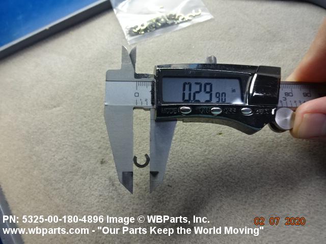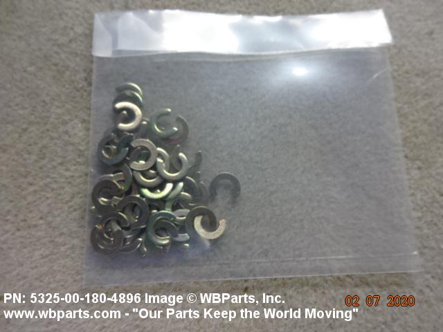 5325-00-180-4896 A resilient metal item, circular or nearly circular, which is designed to be inserted into an internal or external groove and retained by its own spring action, or it may have external prongs or projections designed to be inserted into a hole and retained by spring action of the prongs which grip by imbedding into the material. For items having internal prongs which perform the same function, see PUSH ON NUT. It is used to keep and/or lock a part(s) in position, as a ball bearing on a shaft or in a housing. See also CLIP, RETAINING and PIN, LOCK. Excludes RING, CONNECTING, ROUND.