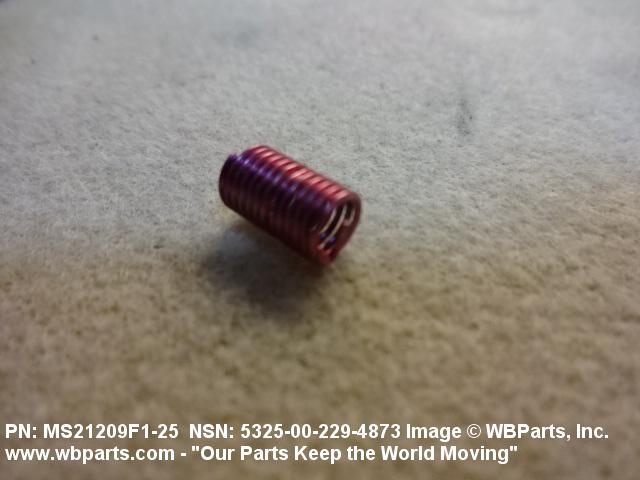 5325-00-229-4873 A cylindrical item which may have wrenching and/or driving facilities and/or shoulders. It is designed to be inserted in a drilled, tapped or a pretapped hole, or molded or pressed into soft material to reduce the size of a tapped hole; to provide threads; to add strength, and/or to prevent stripping. It is one of the following: (1) a one-piece, flanged or unflanged, internally threaded item which may have external threads, and/or serrations around the periphery of the collar, designed to engage a serrated lock ring which is not included with the item; (2) a one-piece precision coiled wire; (3) a two-piece item consisting of an internally threaded cylinder and a mating externally threaded part; or (4) a one-piece internally threaded item whose outside diameter is tapered and/or knurled and/or with fin(s). The internal thread of the item may have a locking feature. Excludes items having a sleeve on on its under portion which can be clinched or crimped. Excludes BUSHING,MACHINE THREAD; NUT,PLAIN,KNURLED; NUT,PLAIN,ROUND; NUT,PLAIN,CLINCH and NUT,SELF-LOCKING,CLINCH. See also NUT,PLAIN,PLATE