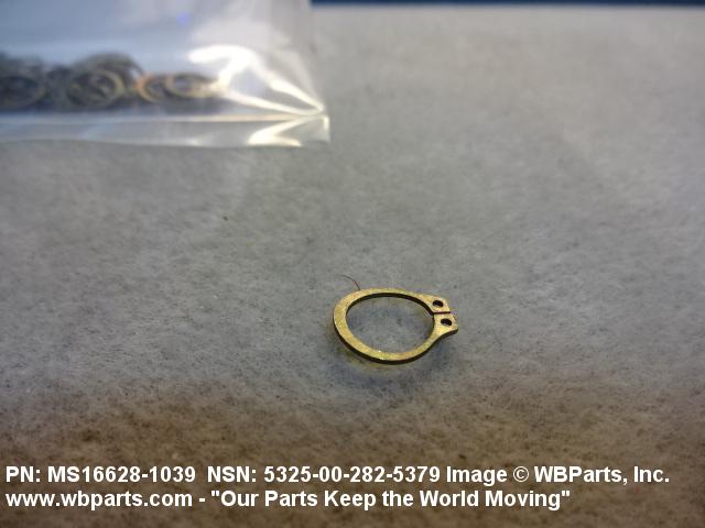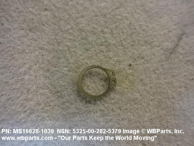 5325-00-282-5379 A resilient metal item, circular or nearly circular, which is designed to be inserted into an internal or external groove and retained by its own spring action, or it may have external prongs or projections designed to be inserted into a hole and retained by spring action of the prongs which grip by imbedding into the material. For items having internal prongs which perform the same function, see PUSH ON NUT. It is used to keep and/or lock a part(s) in position, as a ball bearing on a shaft or in a housing. See also CLIP, RETAINING and PIN, LOCK. Excludes RING, CONNECTING, ROUND.