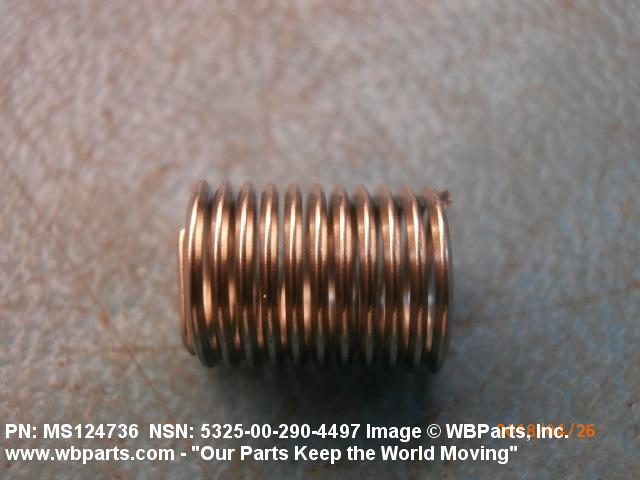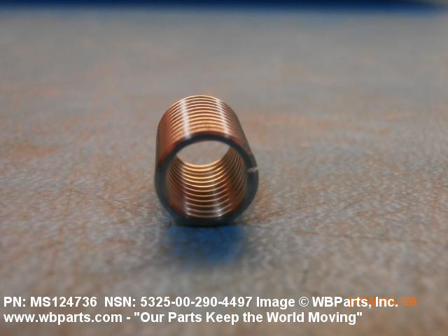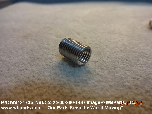 5325-00-290-4497 A cylindrical item which may have wrenching and/or driving facilities and/or shoulders. It is designed to be inserted in a drilled, tapped or a pretapped hole, or molded or pressed into soft material to reduce the size of a tapped hole; to provide threads; to add strength, and/or to prevent stripping. It is one of the following: (1) a one-piece, flanged or unflanged, internally threaded item which may have external threads, and/or serrations around the periphery of the collar, designed to engage a serrated lock ring which is not included with the item; (2) a one-piece precision coiled wire; (3) a two-piece item consisting of an internally threaded cylinder and a mating externally threaded part; or (4) a one-piece internally threaded item whose outside diameter is tapered and/or knurled and/or with fin(s). The internal thread of the item may have a locking feature. Excludes items having a sleeve on on its under portion which can be clinched or crimped. Excludes BUSHING,MACHINE THREAD; NUT,PLAIN,KNURLED; NUT,PLAIN,ROUND; NUT,PLAIN,CLINCH and NUT,SELF-LOCKING,CLINCH. See also NUT,PLAIN,PLATE