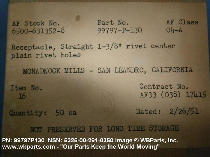 NSN 5325-00-291-0350 R963BI65C, 99747P130, 99797P130